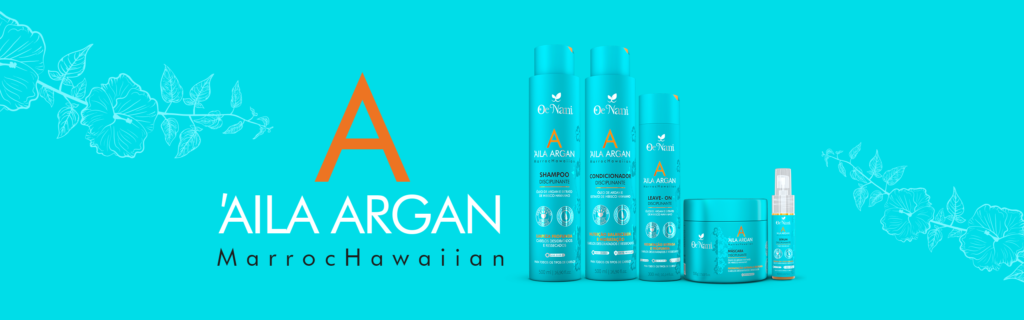 Sempre pensando na inovação dos Ativos Naturais e para o desenvolvimento da linha “Aila Argan MorrocHawaiian”, utilizamos dois potentes ingredientes que juntos, tratam os cabelos que estão profundamente danificados. São eles: Hibisco Havaiano e Argan Marroquino.